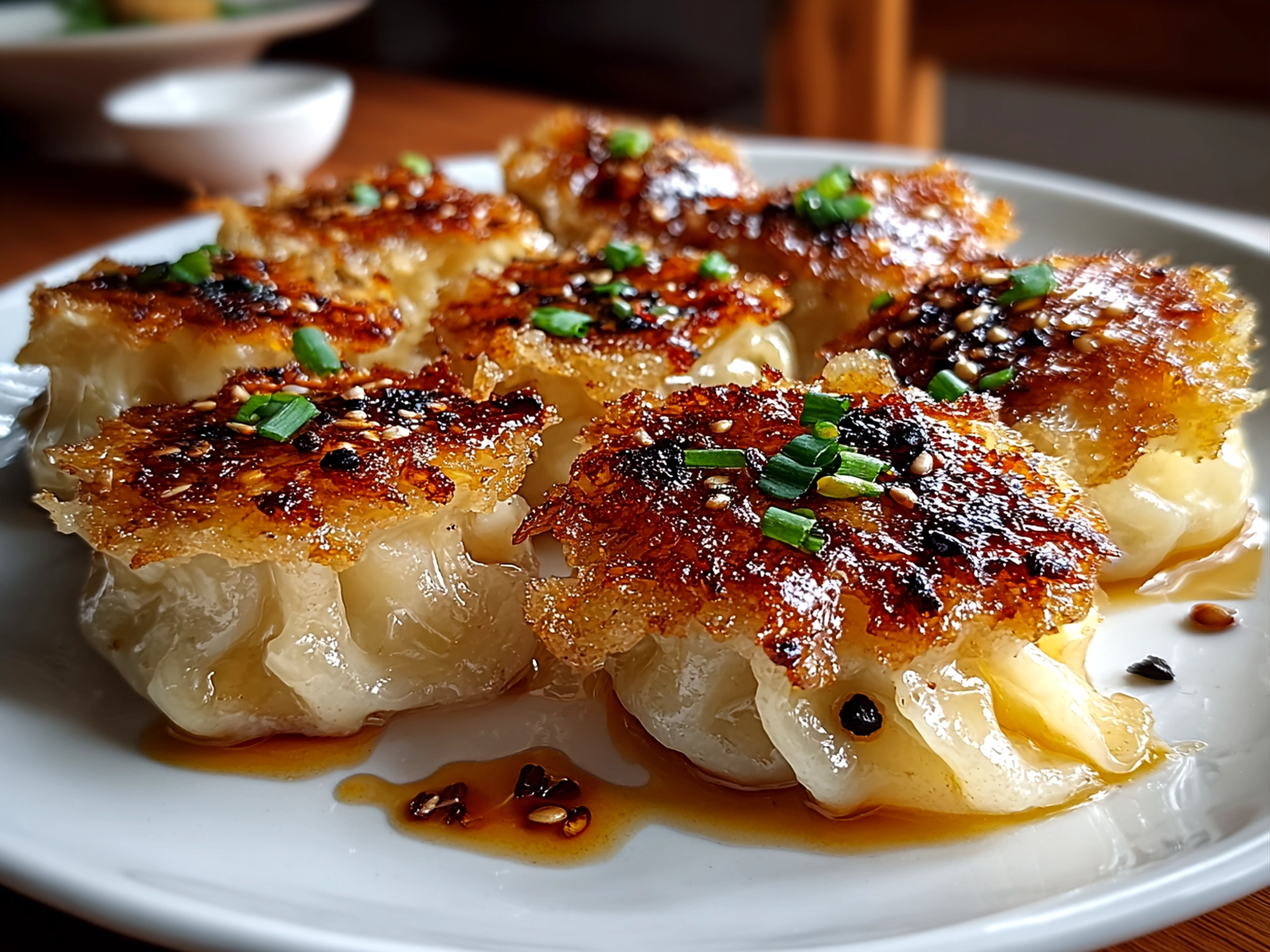 - Fry the dumplings: Place your dumplings seam side down in the oil (careful not to crowd the pan). Fry in batches until the bottoms are golden and crispy, usually about 2-3 minutes. Flip them gently and crisp up the other side as well. Your kitchen should start smelling like that signature toasty aroma rice paper brings out.