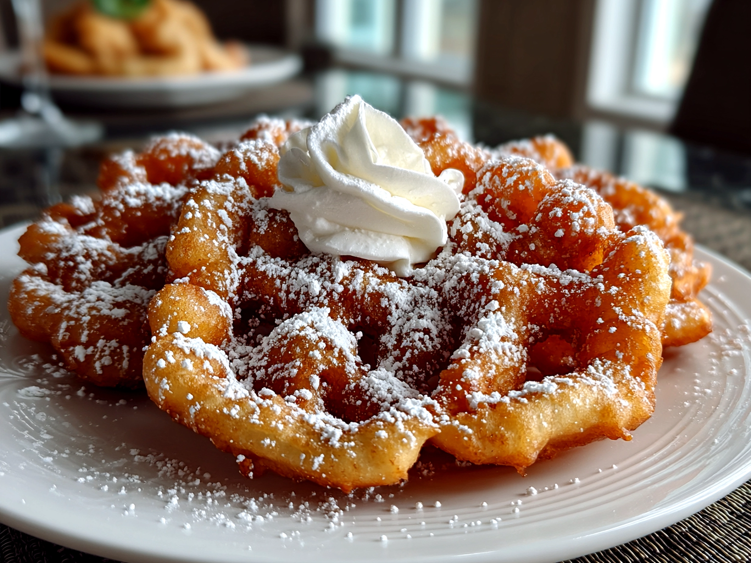 - Drain on paper towels, then dust generously with powdered sugar. While the funnel cake is still warm, sprinkle on that classic powdered sugar topping for the best effect—it melts lightly and adds just the right touch of sweetness.