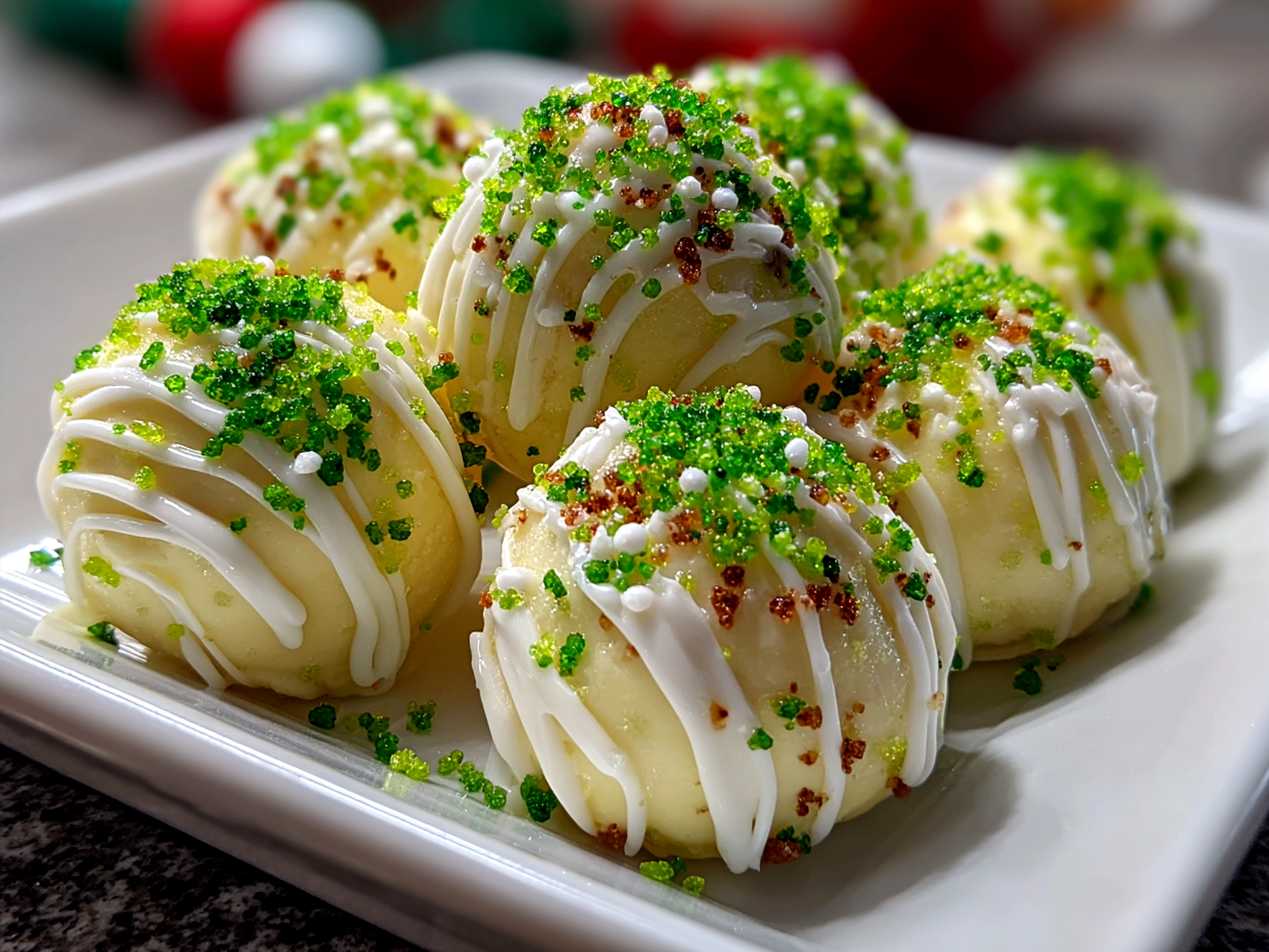 - 12 oz white chocolate or almond bark, melted – For coating the truffles in that beautiful Grinch-green layer.