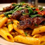 My friends always ask for this One-Pan Spicy Honey Garlic Steak Pasta recipe whenever they come over because it’s quick, flavorful, and turns a simple steak into the ultimate garlic honey steak recipe experience. For a fun twist inspired by my family’s love of pasta, I once swapped penne for tortellini, making something that leaned close to this hot honey tortellini pasta salad. Feedback? Always positive!