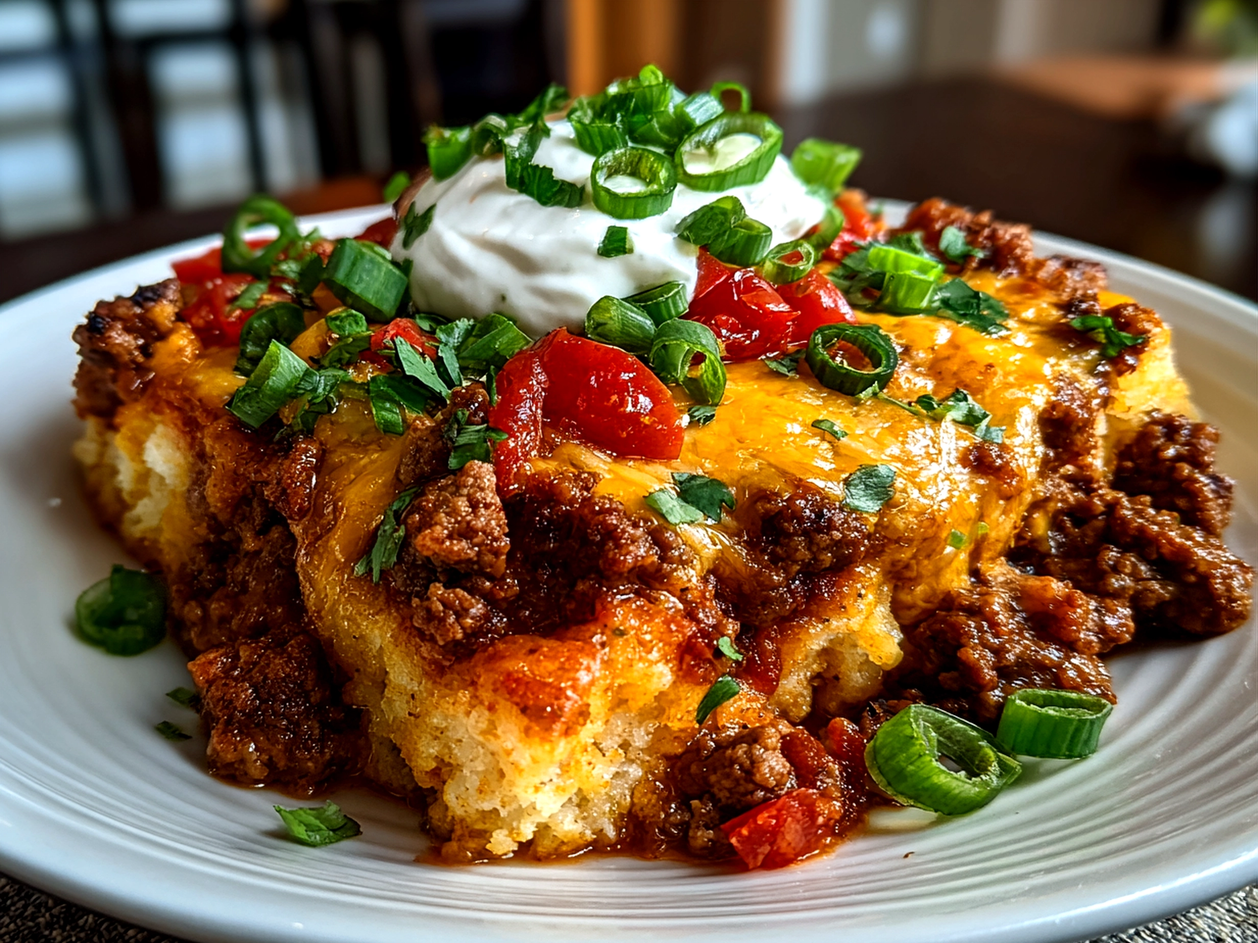 A hearty and flavorful Slow Cooker Cowboy Casserole packed with ground beef, beans, corn, and cheese, perfect for an easy weeknight dinner.