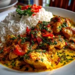 A creamy and aromatic Thai chicken coconut curry that combines tender chicken simmered in rich coconut milk with fragrant spices and fresh herbs for a flavorful meal.