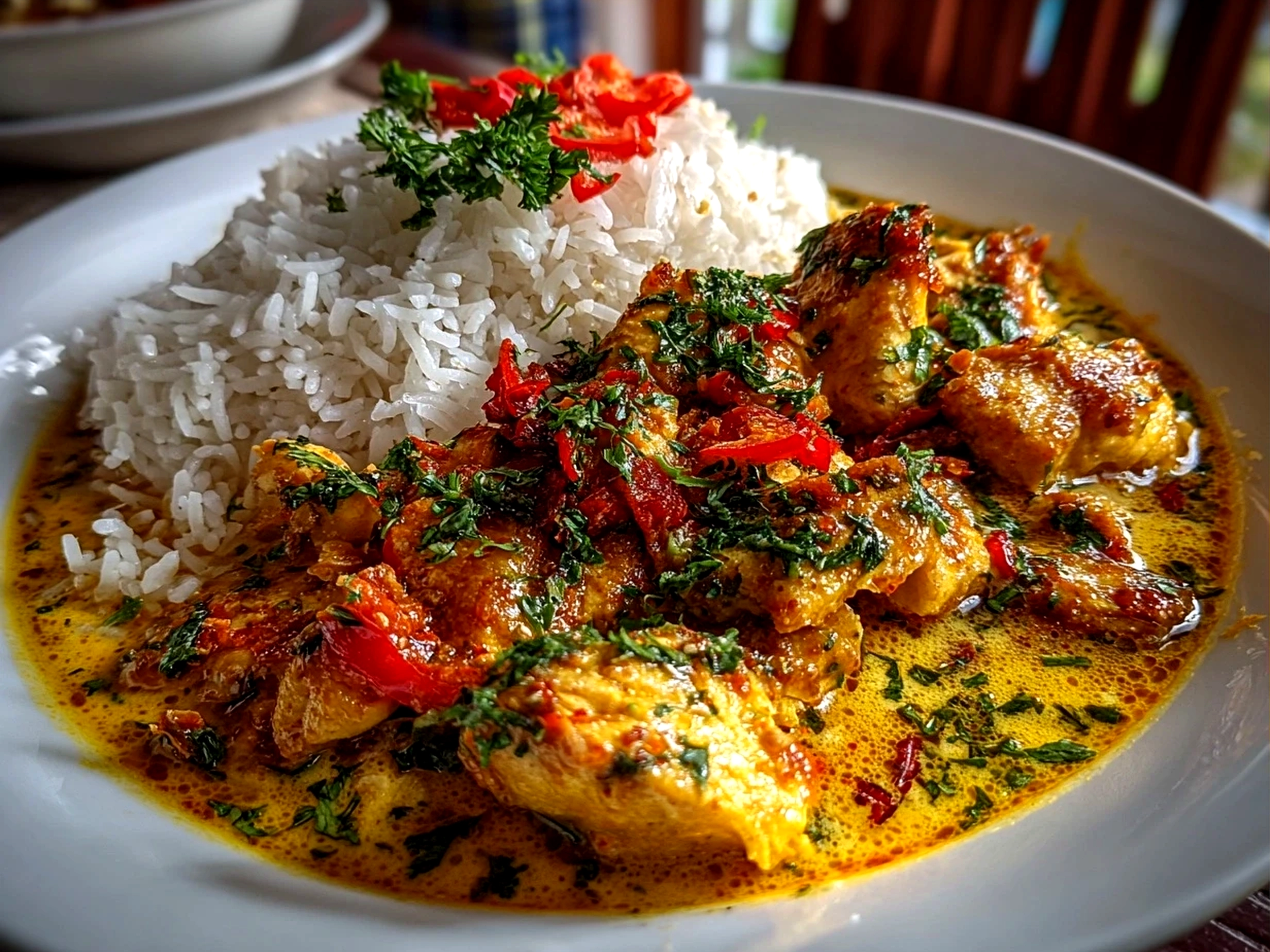 - Use chicken thighs for tenderness and juiciness; they handle the curry’s simmering beautifully.
