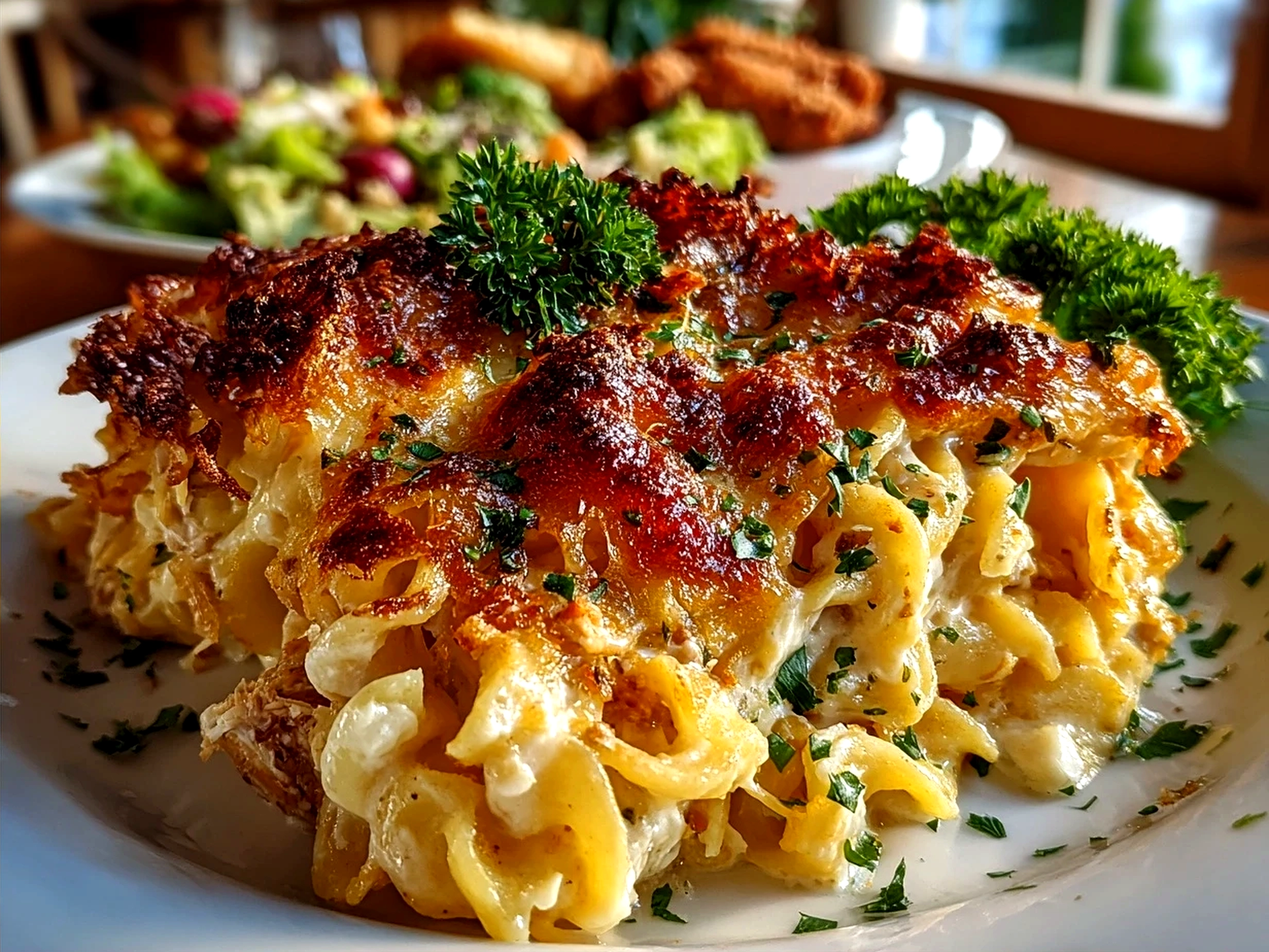 This classic Tuna Noodle Casserole combines tender noodles, creamy sauce, and savory tuna for a comforting and easy-to-make family meal.