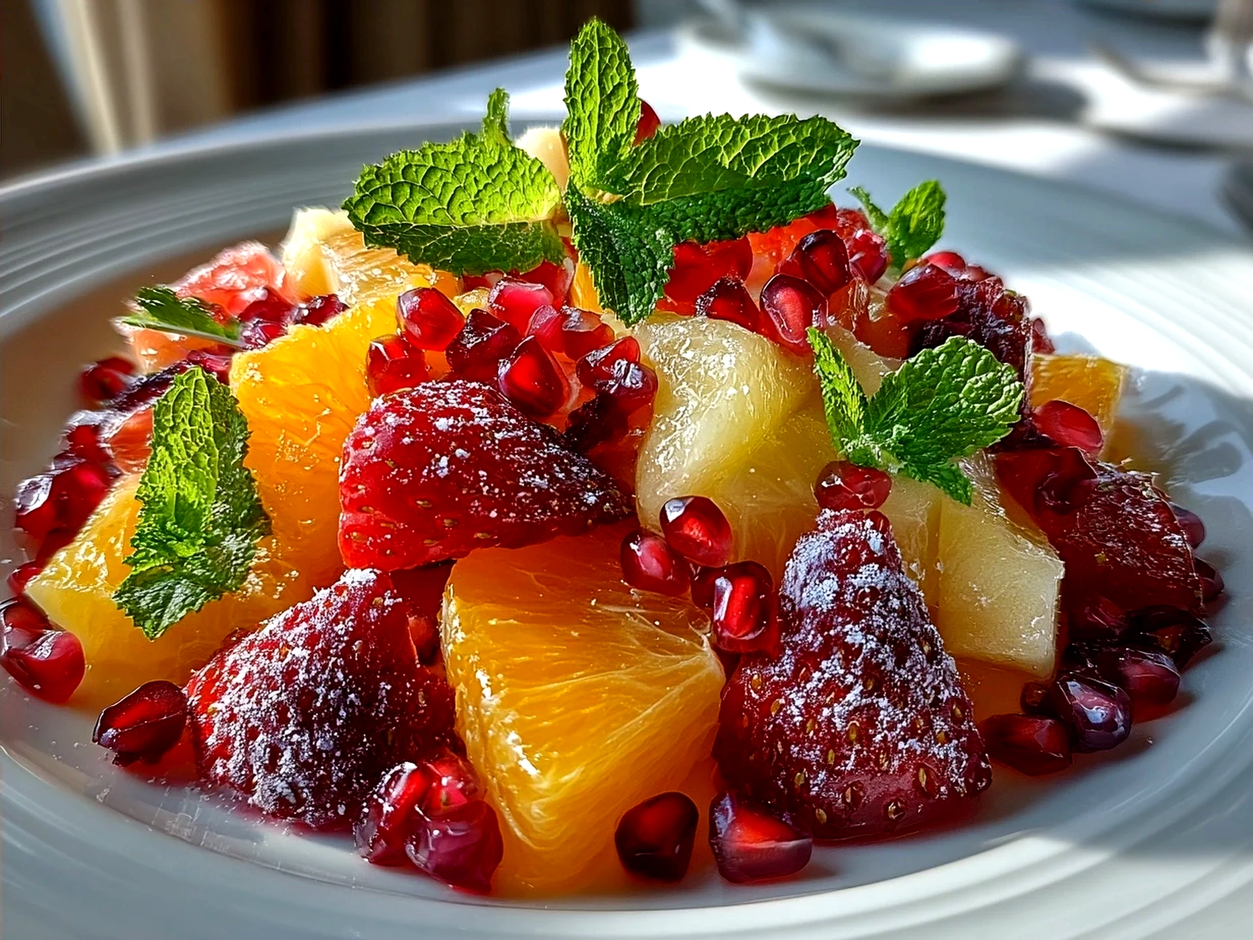 A refreshing and vibrant winter fruit salad featuring seasonal fruits, perfect for a healthy snack or light dessert that bursts with natural sweetness and texture.